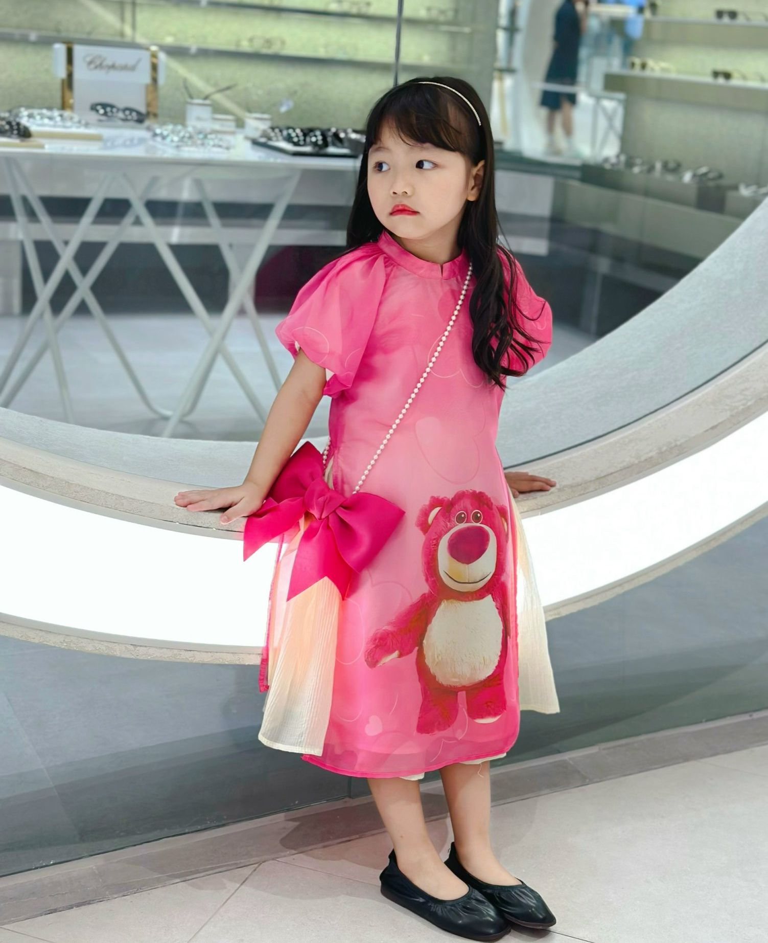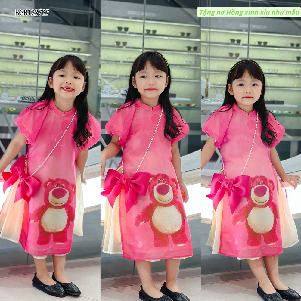 Áo dài cách tân gấu dâu kèm nơ dễ thương cho bé gái đi chơi BGB123727