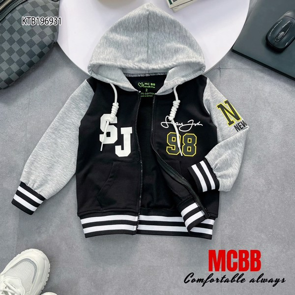 Áo khoát nón NY 98 dễ thương cho bé trai . Áo chất da cá loại 1 phối bo xịn đặt dệt CO GIÃN TUYỆT ĐỐI, ko bao - dão. ➖Kiểu dáng có nón phối màu đối lập đẹp mắt. Bé thoải mái vận động. Áo chạy dây kéo dễ bận ➖Hình in cao cấp cực sắc nét - siêu mỏng - mềm & ko bong dính . Nhí size 2-9. Đại size 10-15. Cồ size 16-20.
