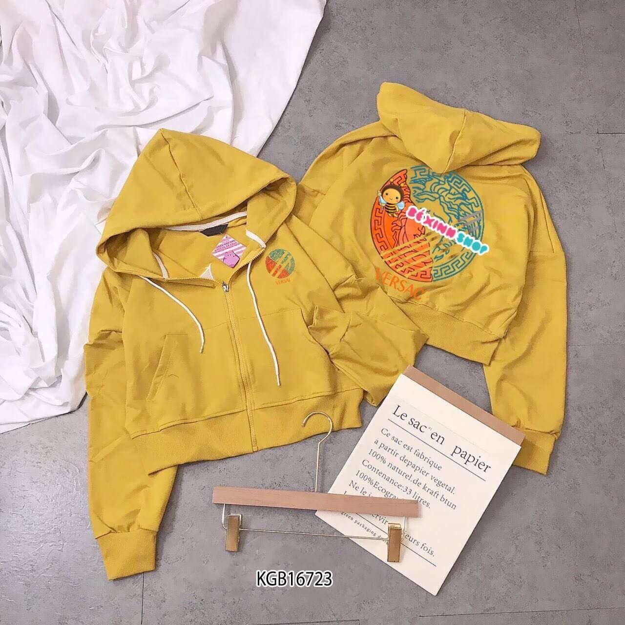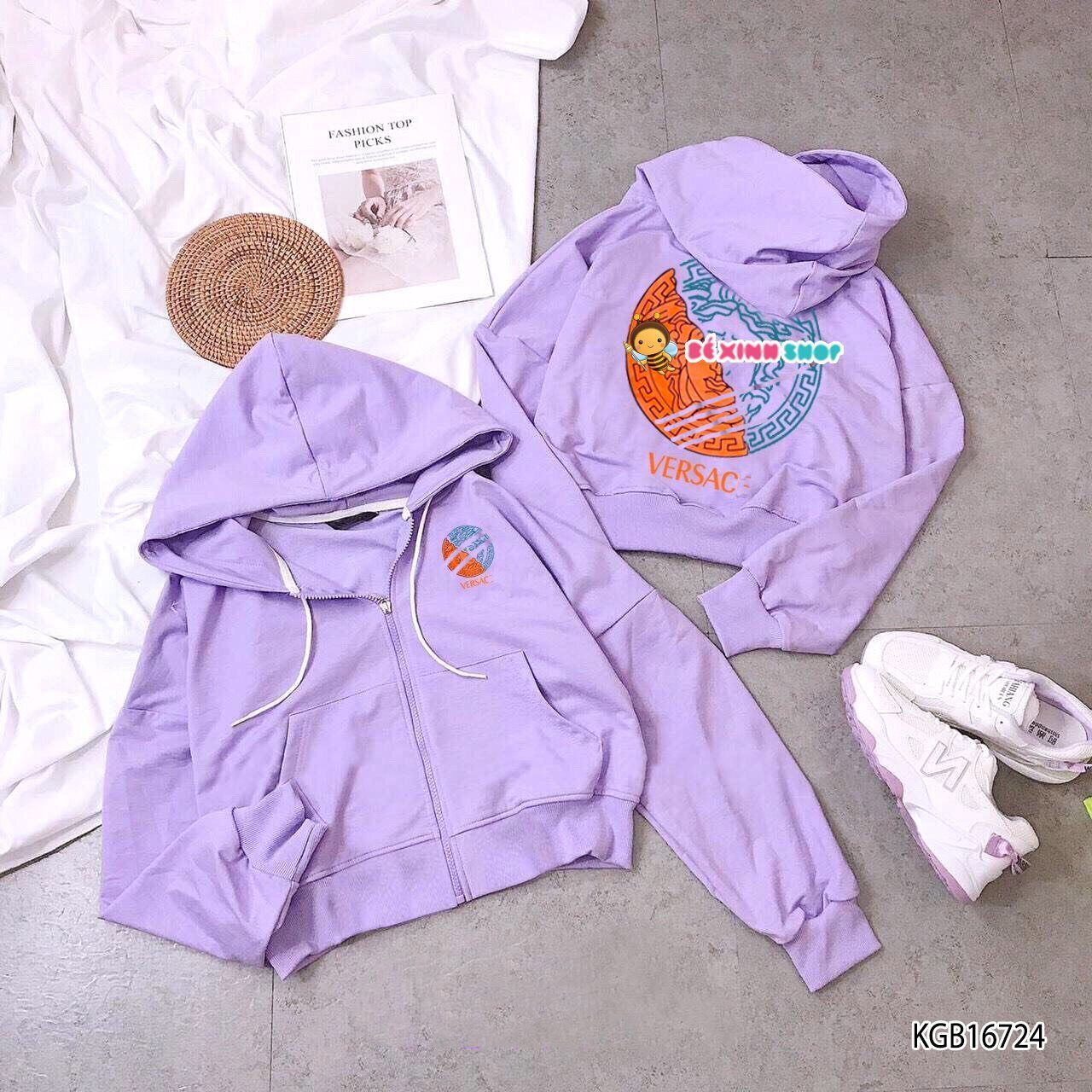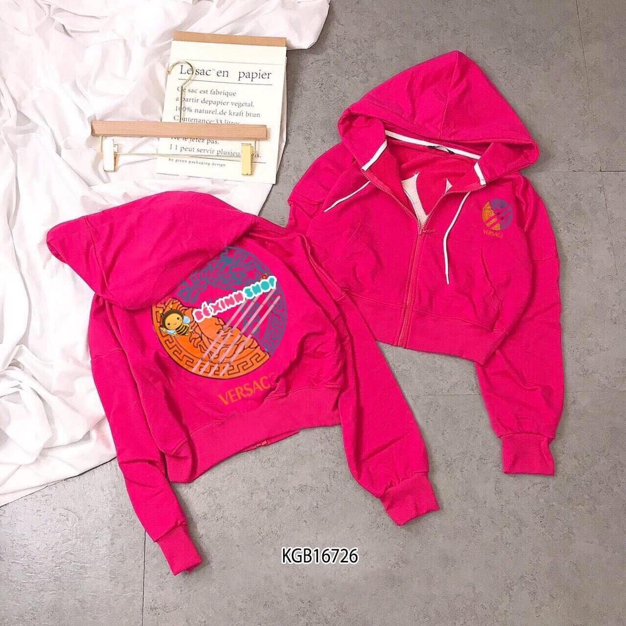 | Thiết kế | Áo Khoác nón VERSAC xin xò sang chảnh cho bé gái, Chất thun da cá loại 1 mịn, đẹp, bo dệt, hình in sắc nét trước sau sang chảnh |