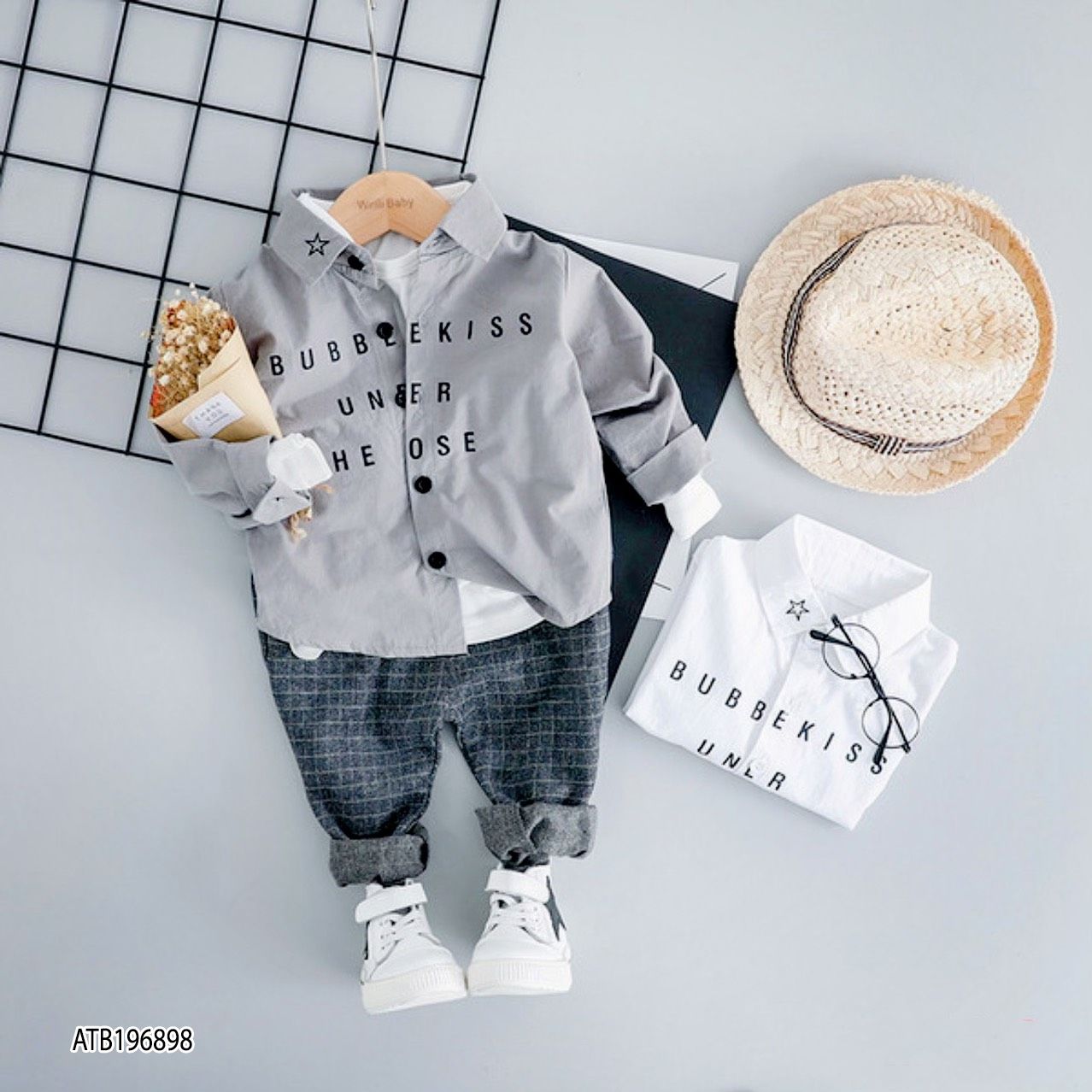 Áo sơ mi in chữ dễ thương cho bé trai phối đồ ATB196897