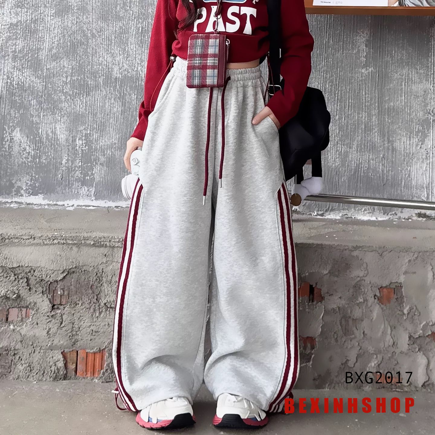 - Thiết kế đáng yêu: Áo dài tay phom croptop kèm dây rút hai bên, kết hợp in chữ 3D phong cách thể thao. Quần phom rộng đang Trend năm nay, phối viền thễ thao hai bên phong cách. Lưng may dây gút thật, bo ống có phối dây gút tăng giảm, có thể mang hai kiểu ống rộng và ống bo nếu thích.