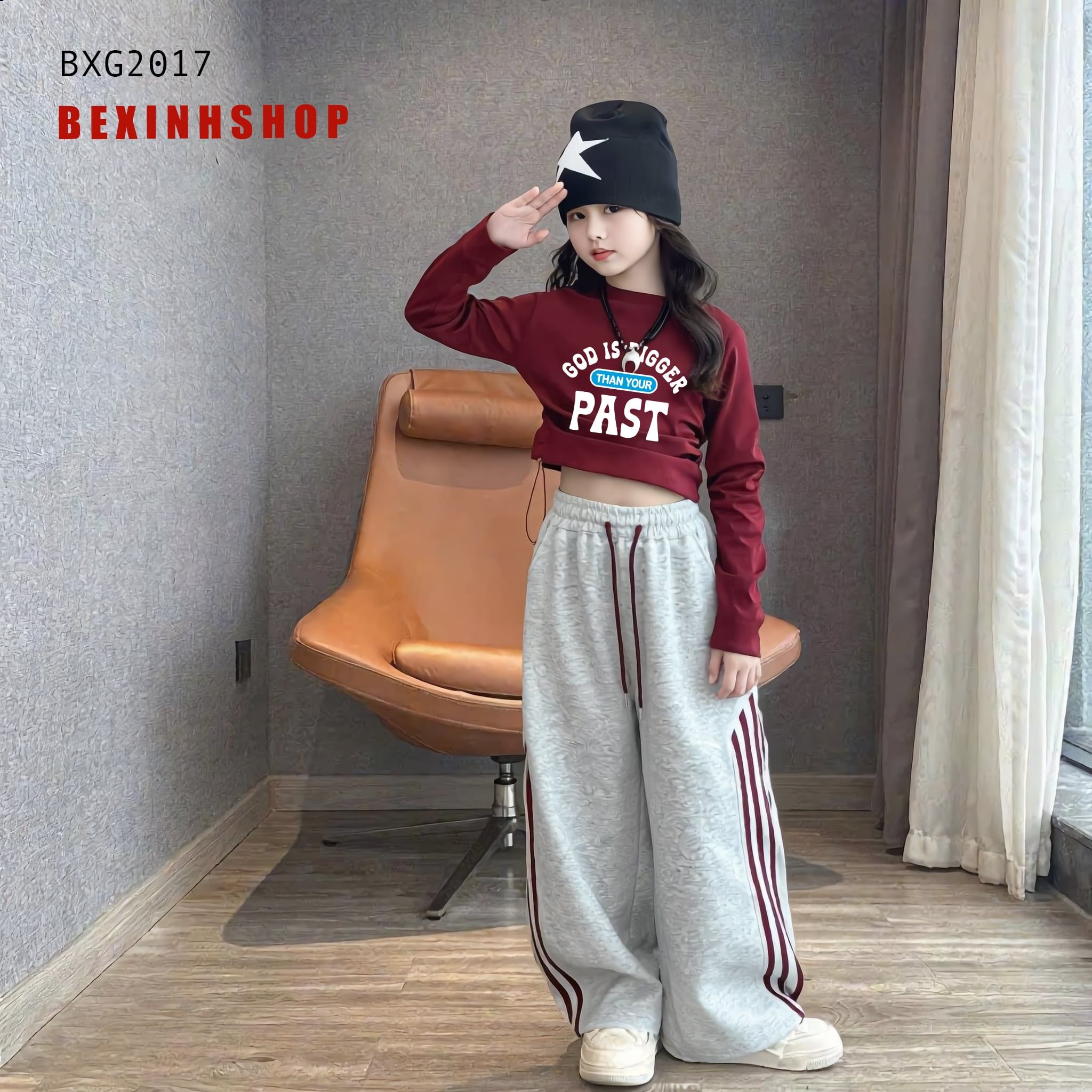 [BexinhshopVN] Set áo dây rút quần phom rộng dễ thương cho bé gái BXG2017