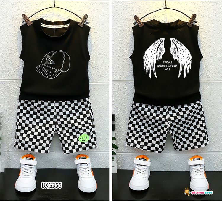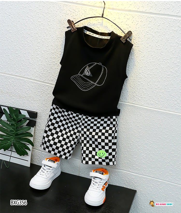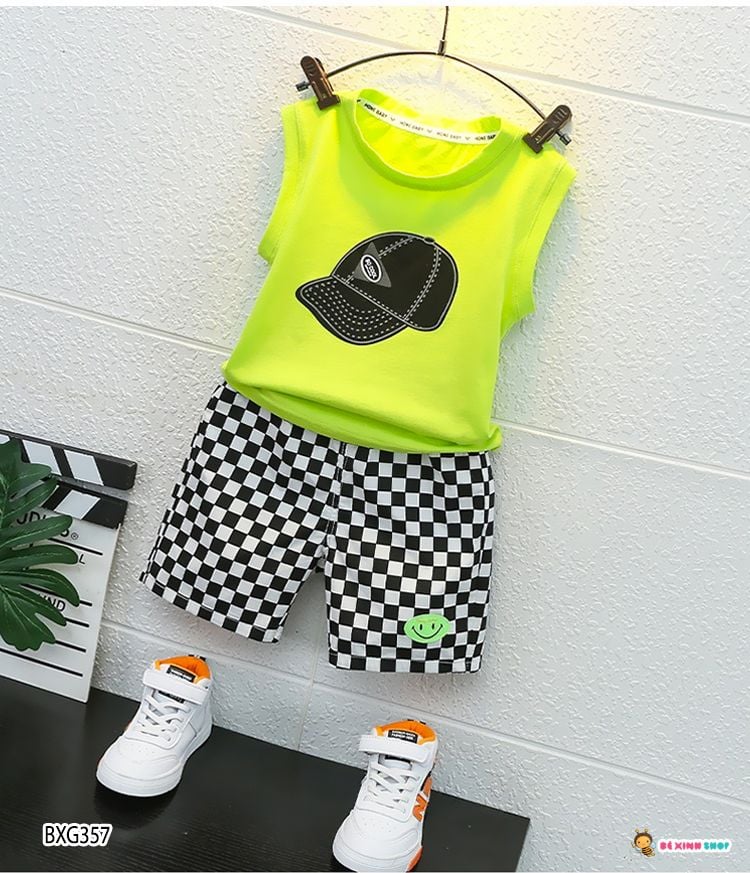 Bộ áo sát nách in nón quần caro dễ thương cho bé trai BXG355