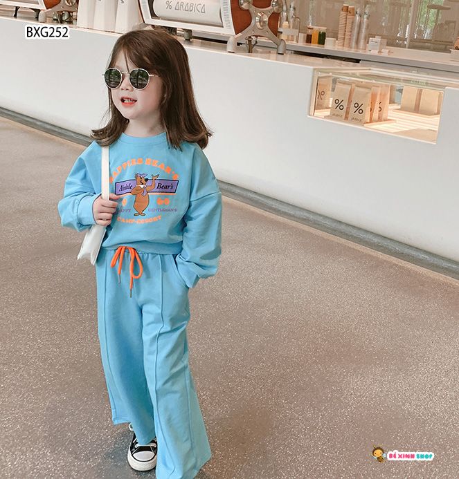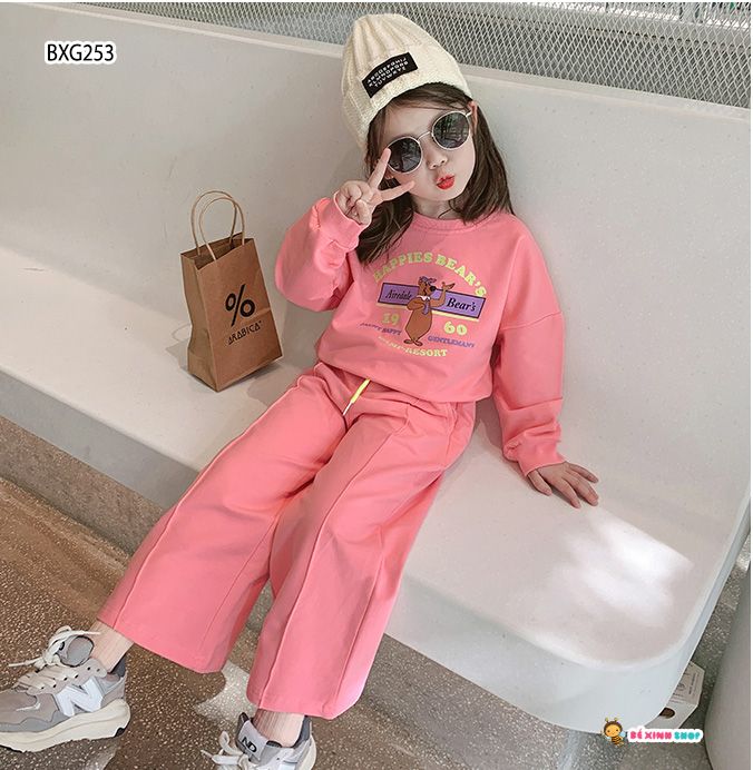 Bộ DÀI TAY in gấu ỐNG RỘNG dễ thương cho bé gái BXG251