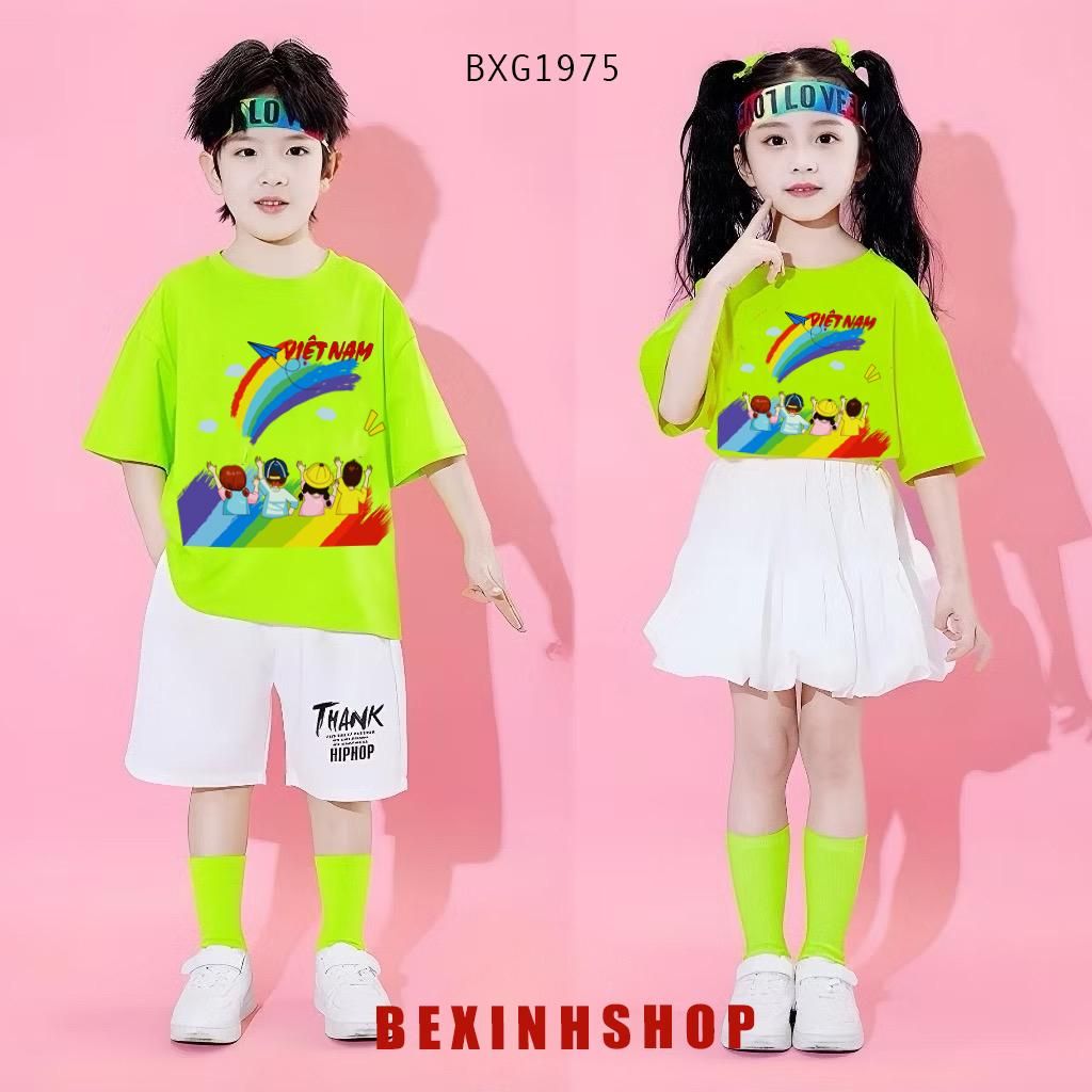 Bộ đồng phục bé trai & bé gái áo thun quần váy bí cho bé nhảy múa, đi chơi BXG1975