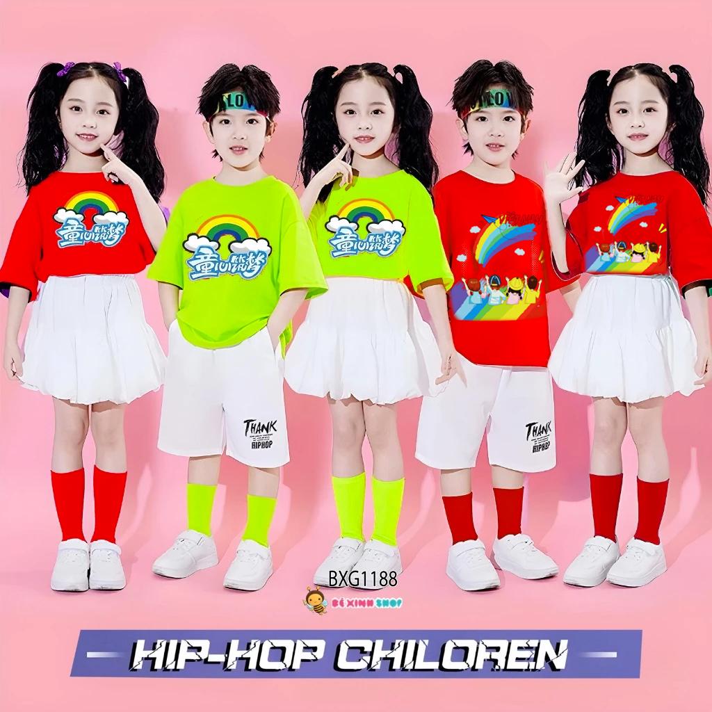 Set đồng phục bé trai & bé gái áo thun quần váy bí cho bé nhảy múa, đi chơi. Có 2 kiểu: Hình Cầu Vồng và Hình Cún Noel bé mang dịp giáng sinh. Màu sắc: Đỏ & Xanh Chuối.