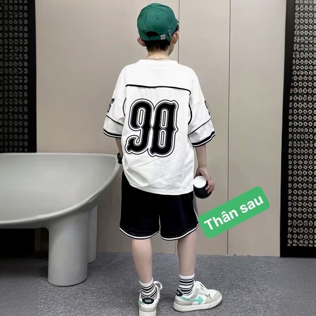 Bộ hiphop thề thao AEUSA dễ thương cho bé trai. Nguyên bộ được may bằng dòng vải thun cotton 4c mềm mịn, áo in sắc nét trước và sau, ngực tay và thân kẹp lé, than sau in chữ kết hợp lé vải, tay đi bo cotton dệt mềm mịn. Quần form rộng rãi thoải mái, 2 bên in charm sắc nét, lai may bo cotton mềm mịn. Đại size 11 - 16. Cồ size 17 - 22.