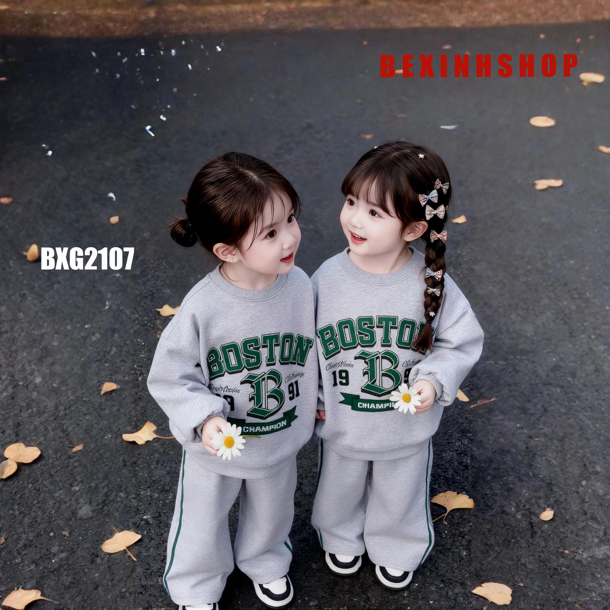 Bộ nỉ dài tay quần ống suông in chữ Boston cho bé trai & bé gái BXG2107