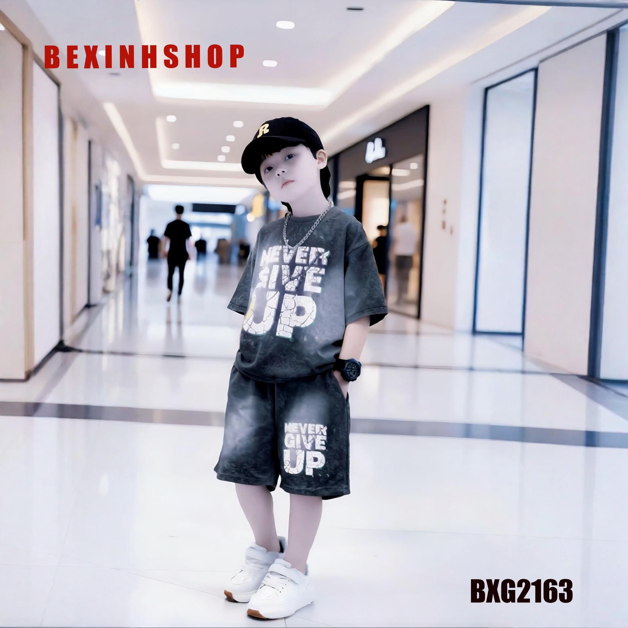 Bộ thun bé trai wash đá in CHỮ BXG2161