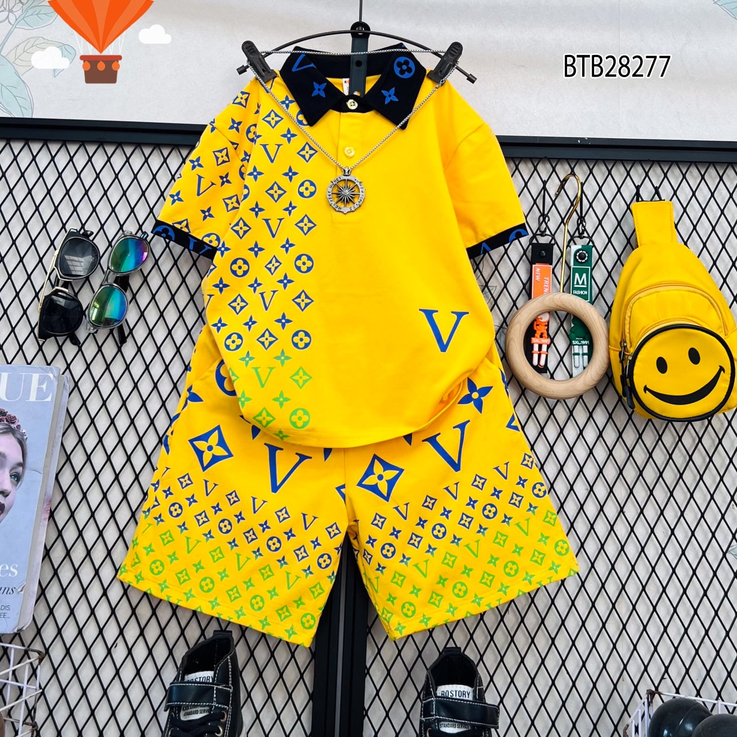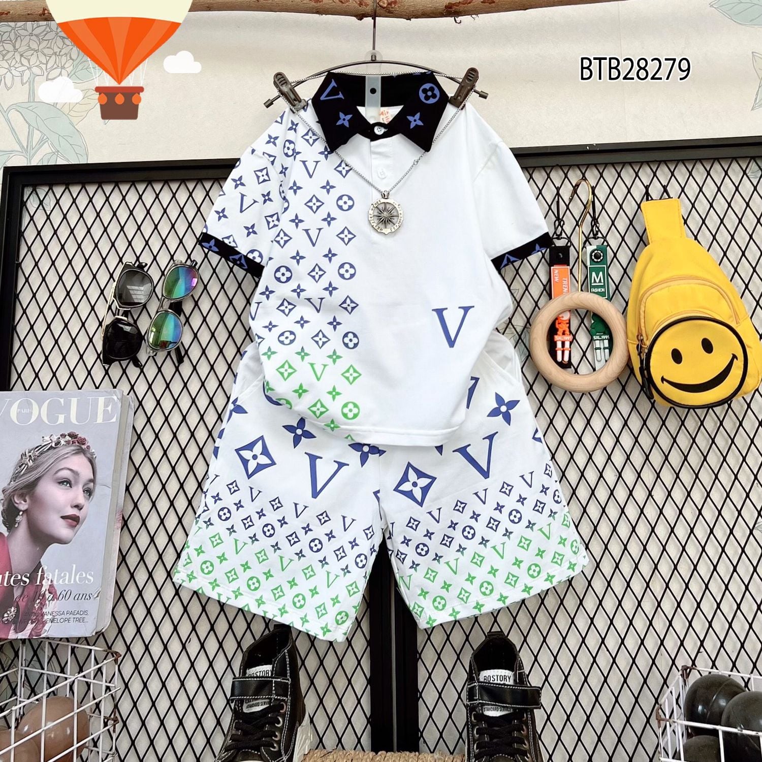 Bộ thun cổ trụ LV dễ thương cho bé trai - chất liệu: nguyên bộ thun cotton 4c mềm mịn cực mát , hàng in full chìm không dính , hàng chuẩn đẹp. Nhí size 3 - 10. Đại size 11 - 17. Cồ size 18 - 23.