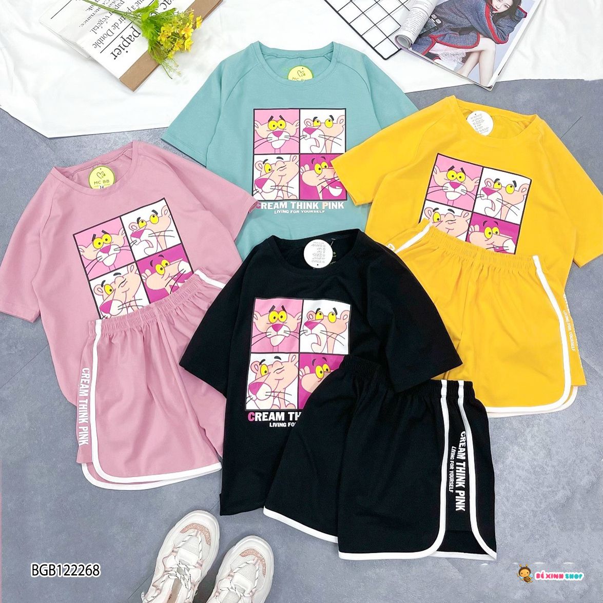 Set bộ BÁO HỒNG 2022 siêu yêu cho bé giá. Chất liệu: Nguyên bộ thun cotton co giãn 4C chính phẩm mềm mại, mát mẻ ✔️Thiết kế phom chuẩn ngọt ngào và năng động — Nhí size 2-9 — Đại size 10–15.