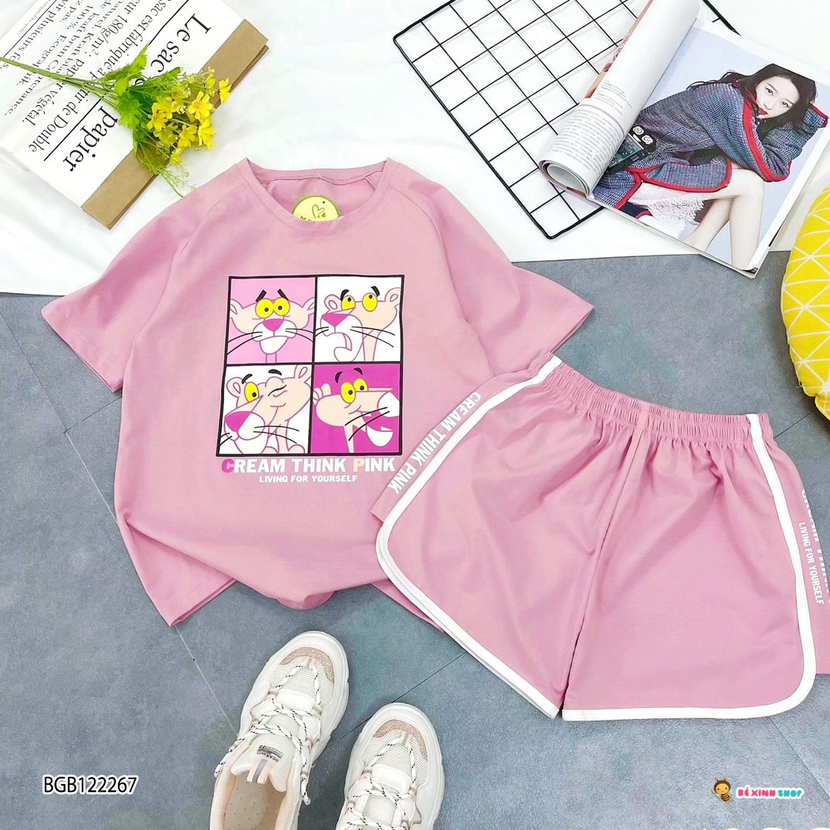 Bộ thun ĐÙI in báo hồng dễ thương cho bé gái BGB122266