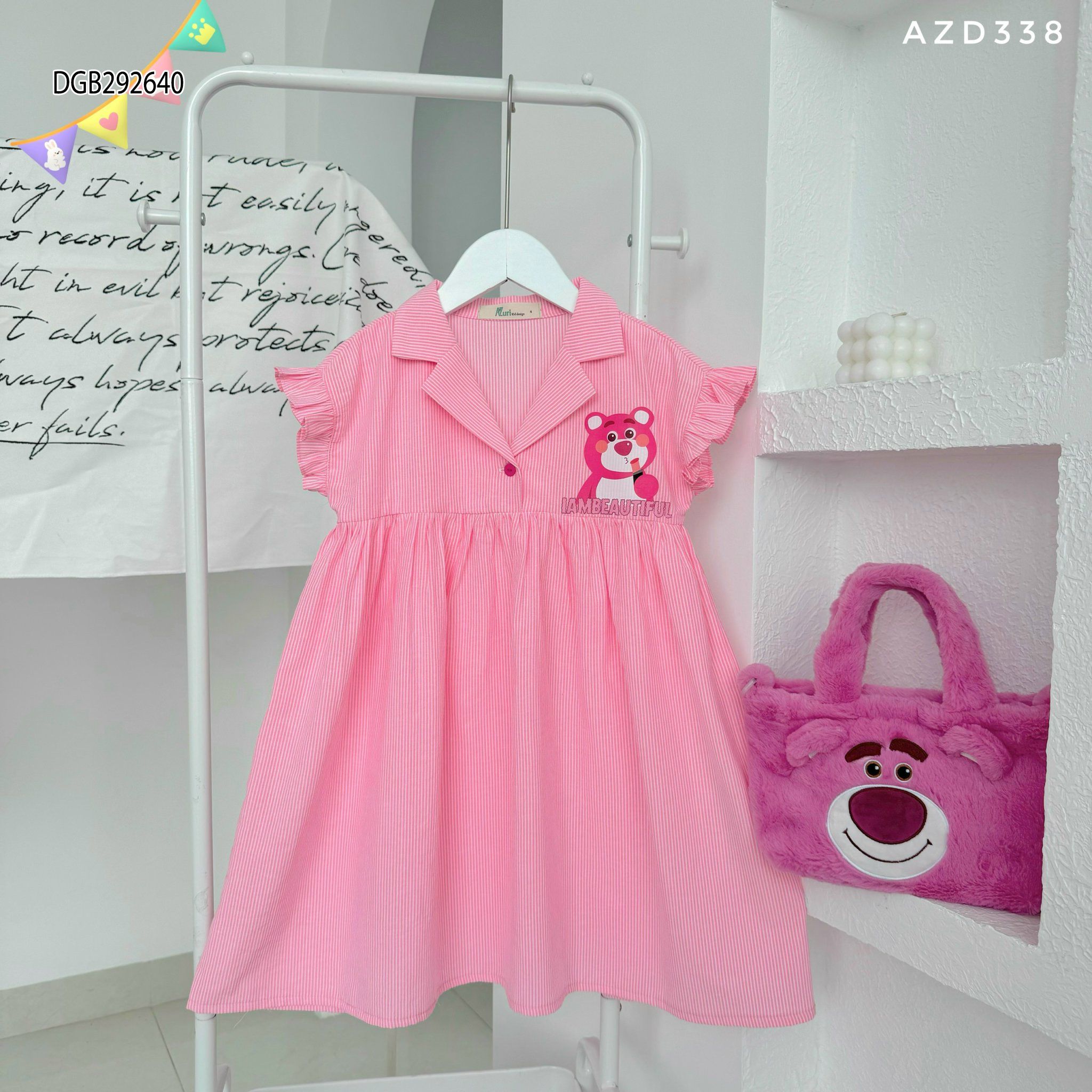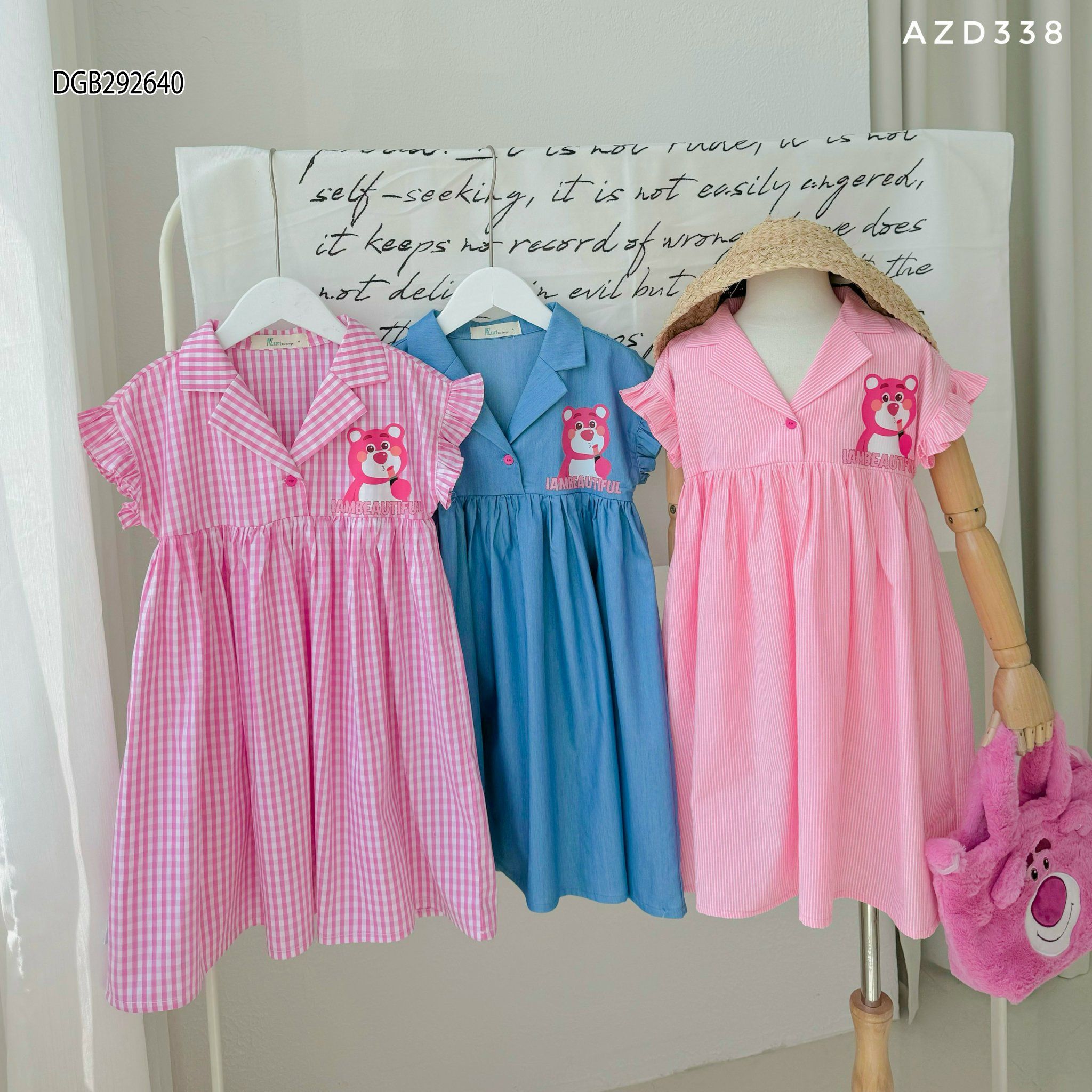 Đầm cổ Dalton tay bèo gấu dâu dễ thương cho bé gái DGB292639