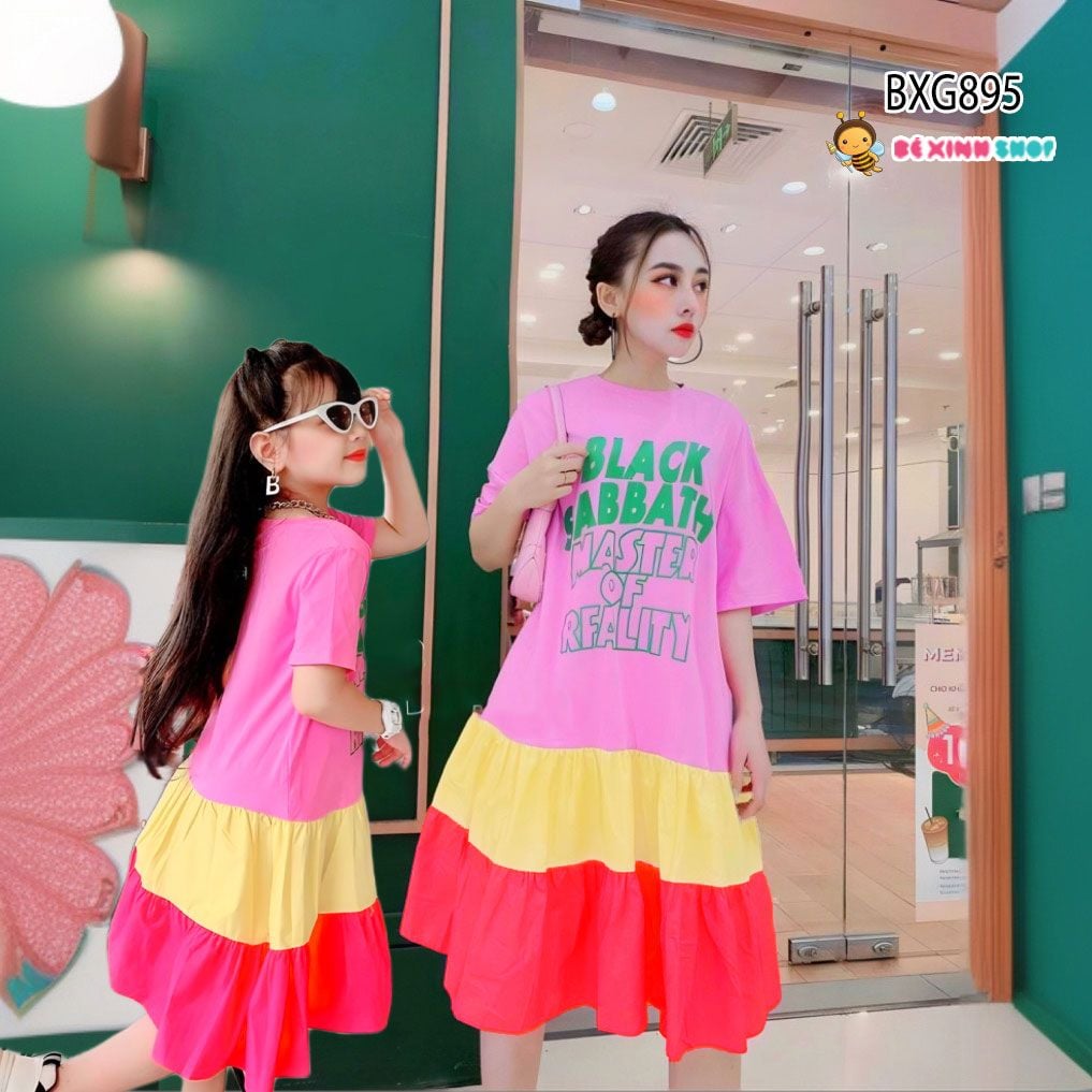 Đầm đuôi cá in chữ chân váy tầng dễ thương cho MẸ & Bé Gái BXG894