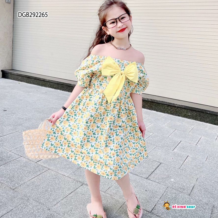 [XẢ KHO] Đầm kate hoa đính nơ to dễ thương cho bé gái DGB292263
