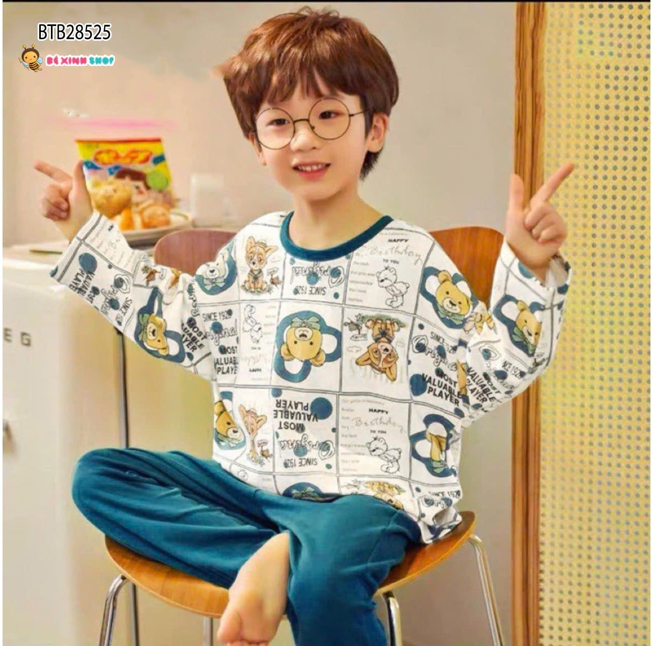 Set thun dài tay hoạ tiết gấu dễ thương cho bé trai BTB28523