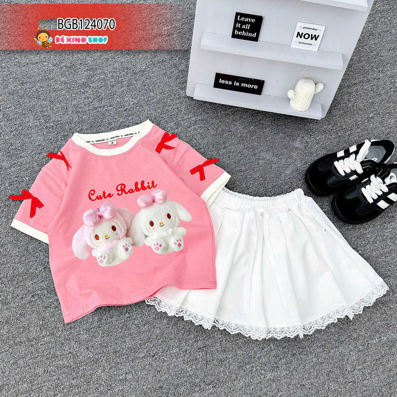 Set áo đính nơ Cute Rabbit phối chân váy đáp ren dễ thương cho bé gái BGB124070