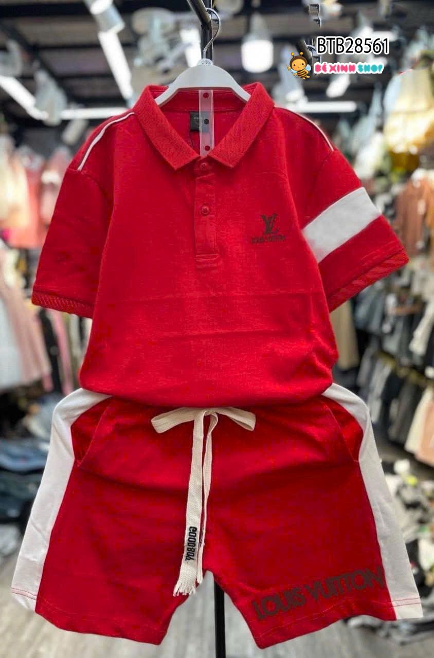 Set cổ trụ lé vai phối màu thêu L..V dễ thương cho bé trai BTB28560