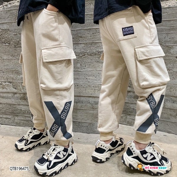 Quần da cá túi hộp chữ X dễ thương cho bé trai QTB196475