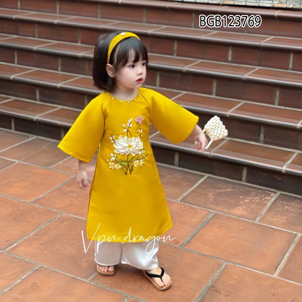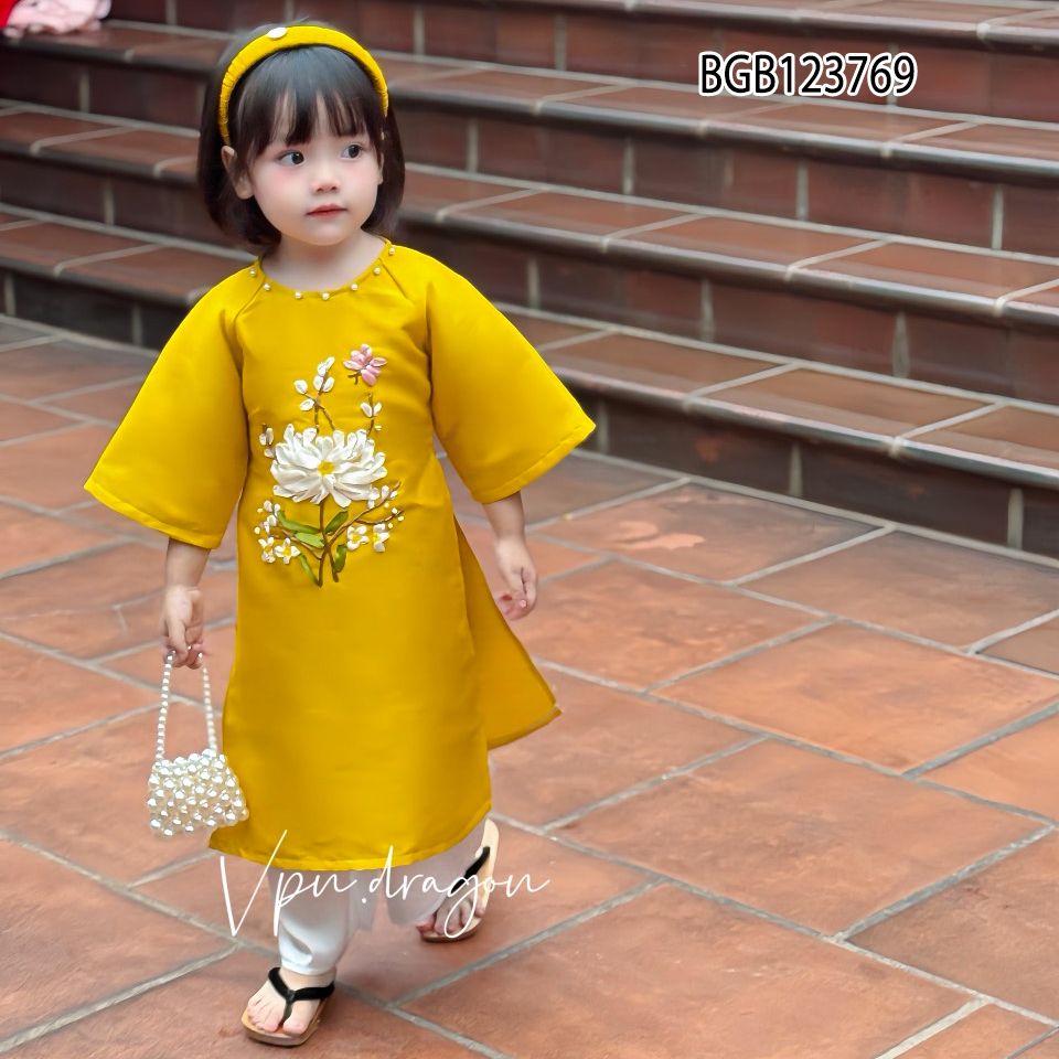 [XẢ KHO] Set áo dài tapta thêu hoa kèm cài dễ thương cho bé gái ngày Lễ Tết BGB123768