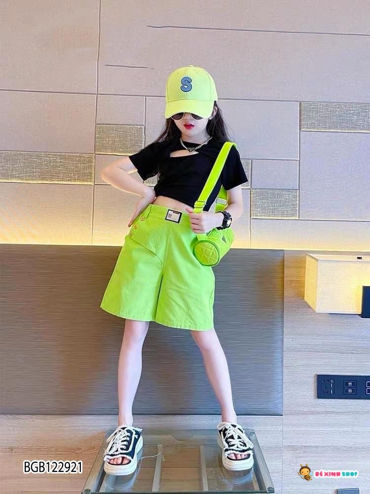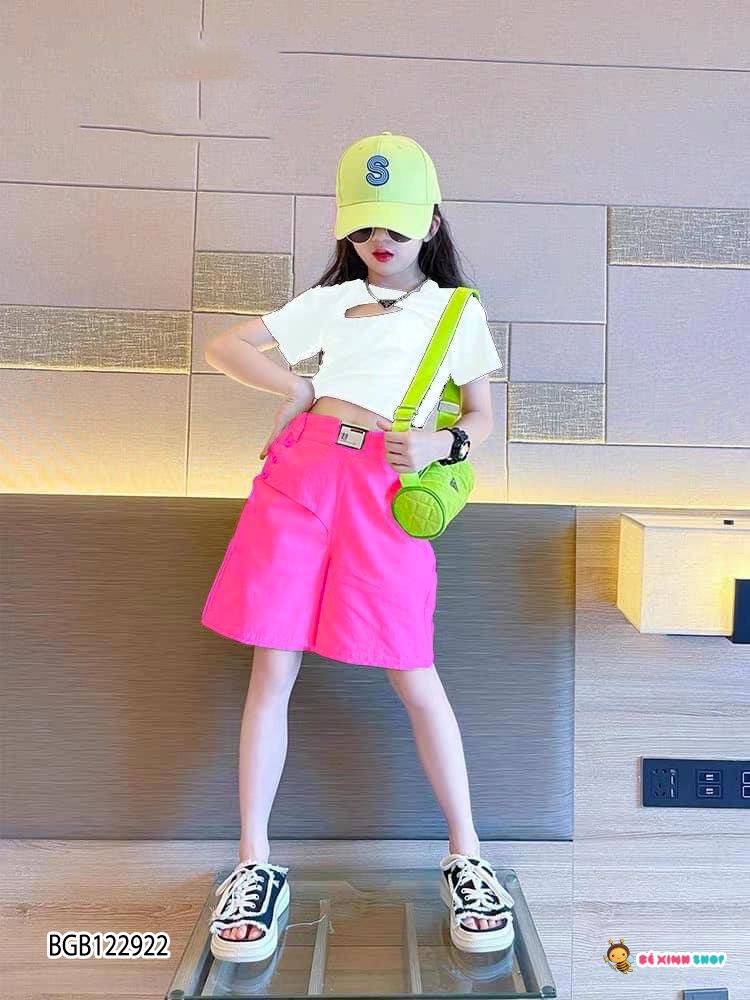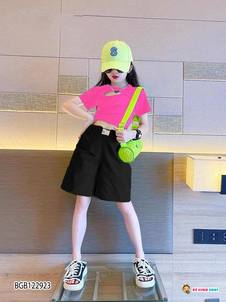 Set áo kiểu quần bo lai dễ thương cho bé gái BGB122921