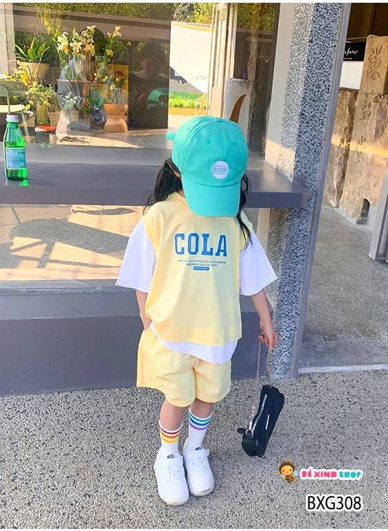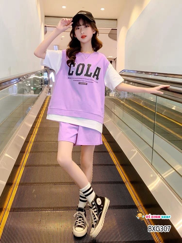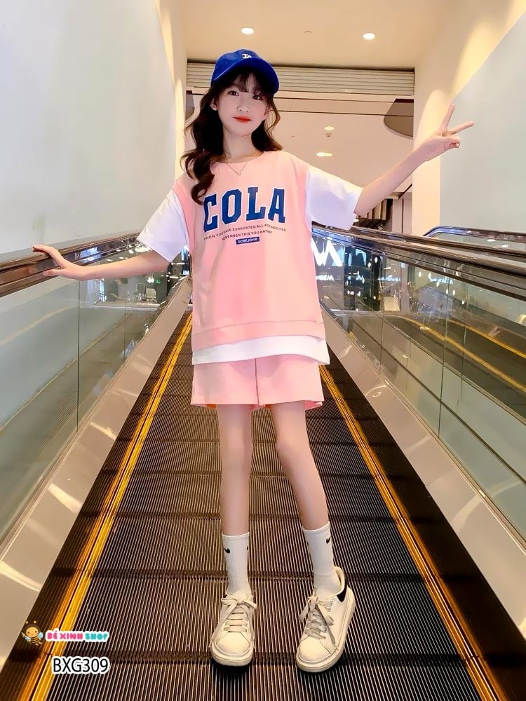 Set áo lệch tà COLA quần sort dễ thương cho bé gái BXG307