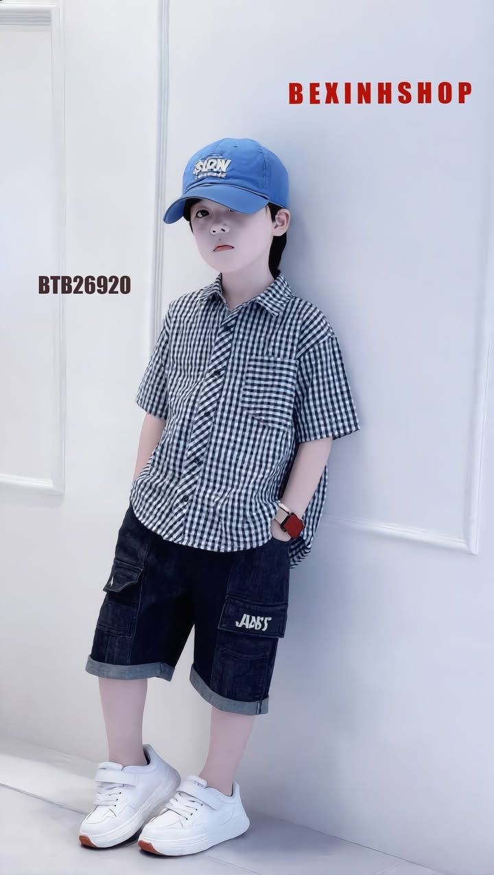 Set áo sơ mi quần kaki túi hộp dễ thương cho bé trai đi chơi BTB28974