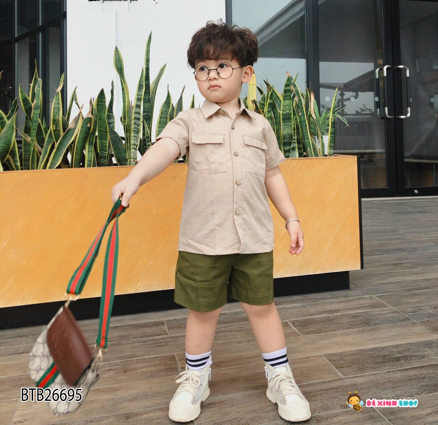 Set áo sơ mi túi hộp quần kaki thun dễ thương cho bé trai BTB26695