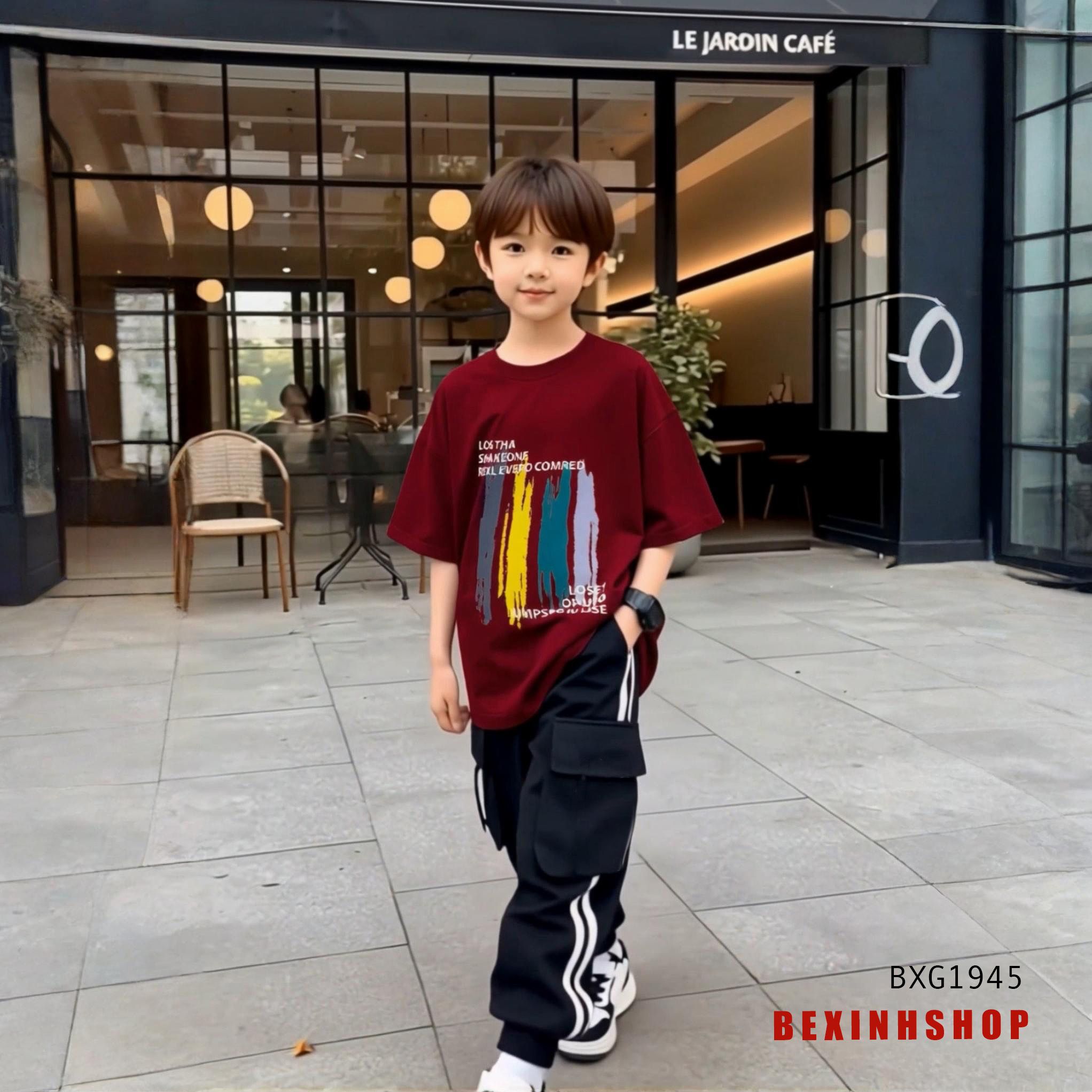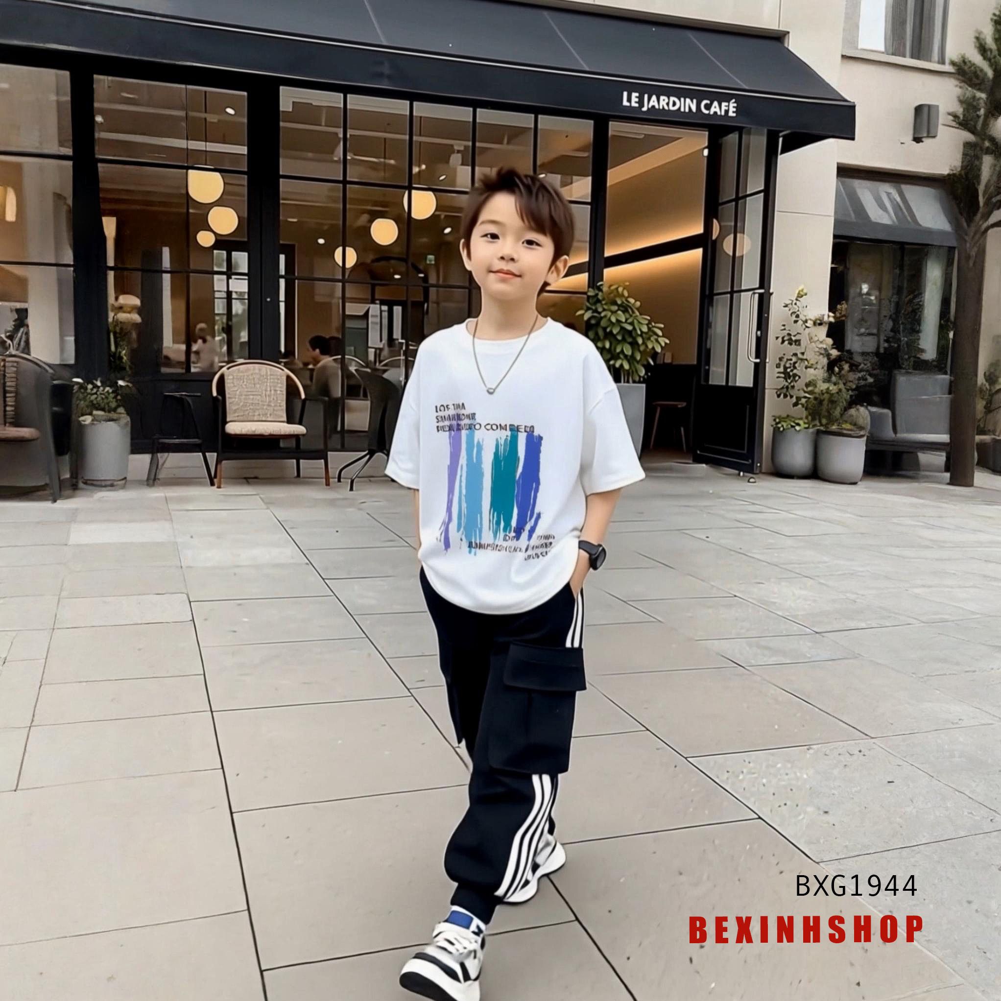 Set áo vạch sơn quần kaki jogger túi hộp đẹp cho bé trai đi chơi BXG1944