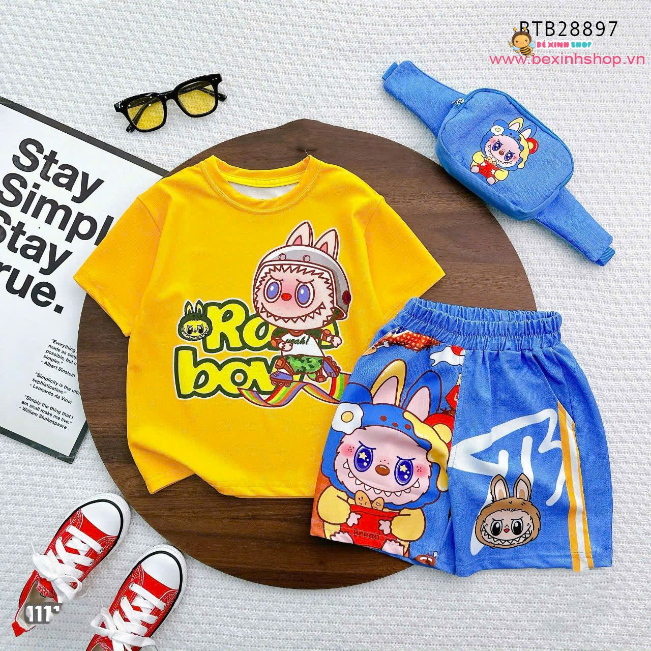 Set bé trai họa tiết (KÈM TÚI ĐEO)dễ thương cho bé trai BTB28897