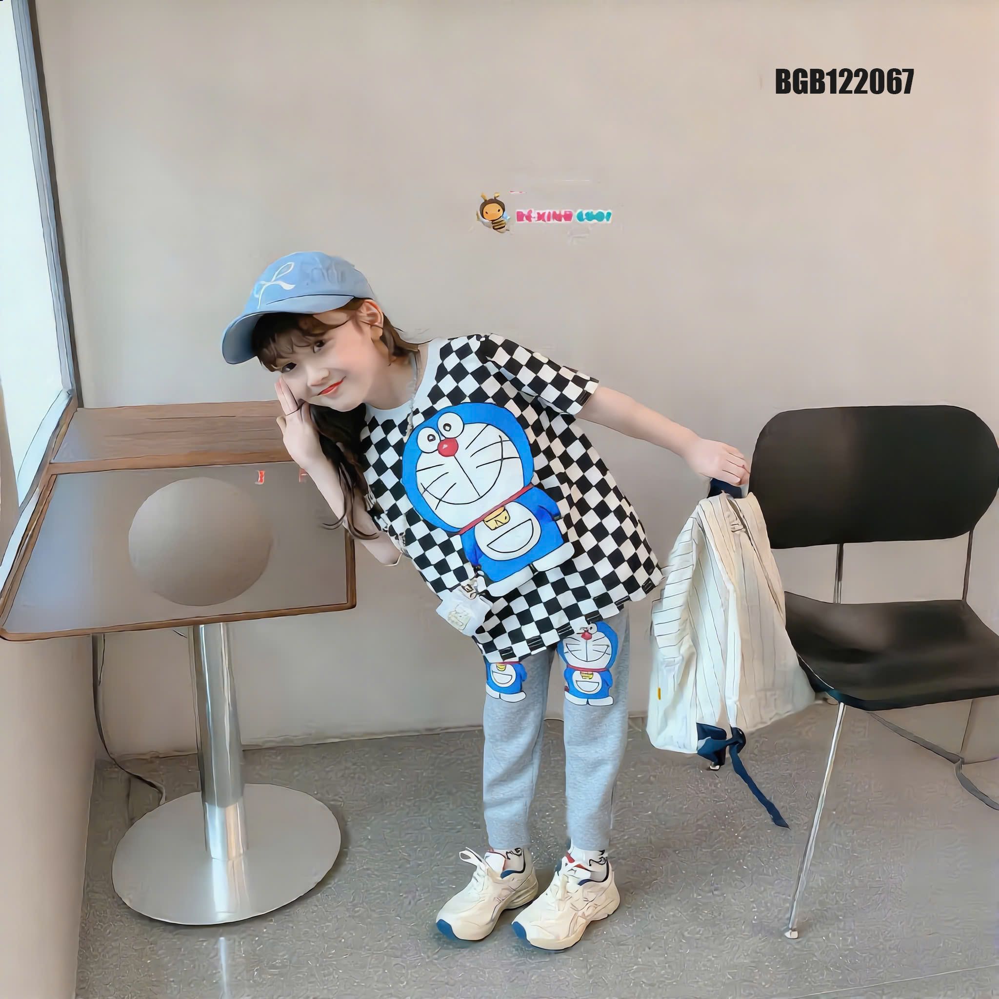 Set caro DOREMON quần dài dễ thương cho bé gái BGB122065