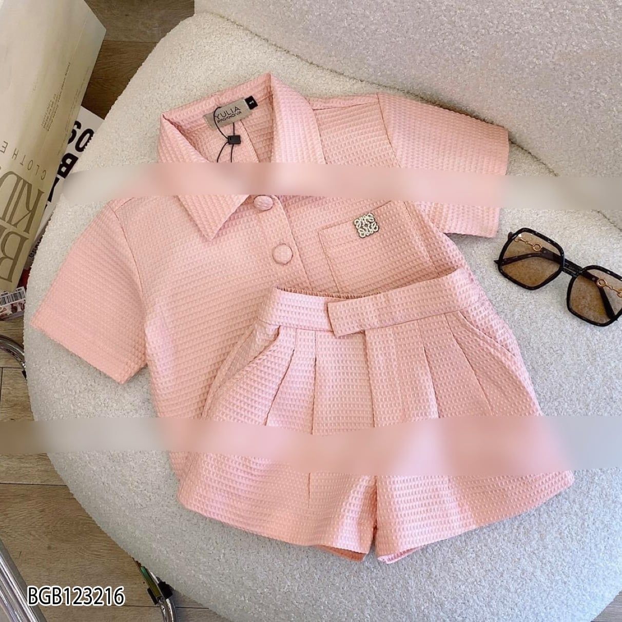[XẢ KHO] Set cổ trụ nút bọc quần sort dễ thương cho bé gái đi chơi BGB123216