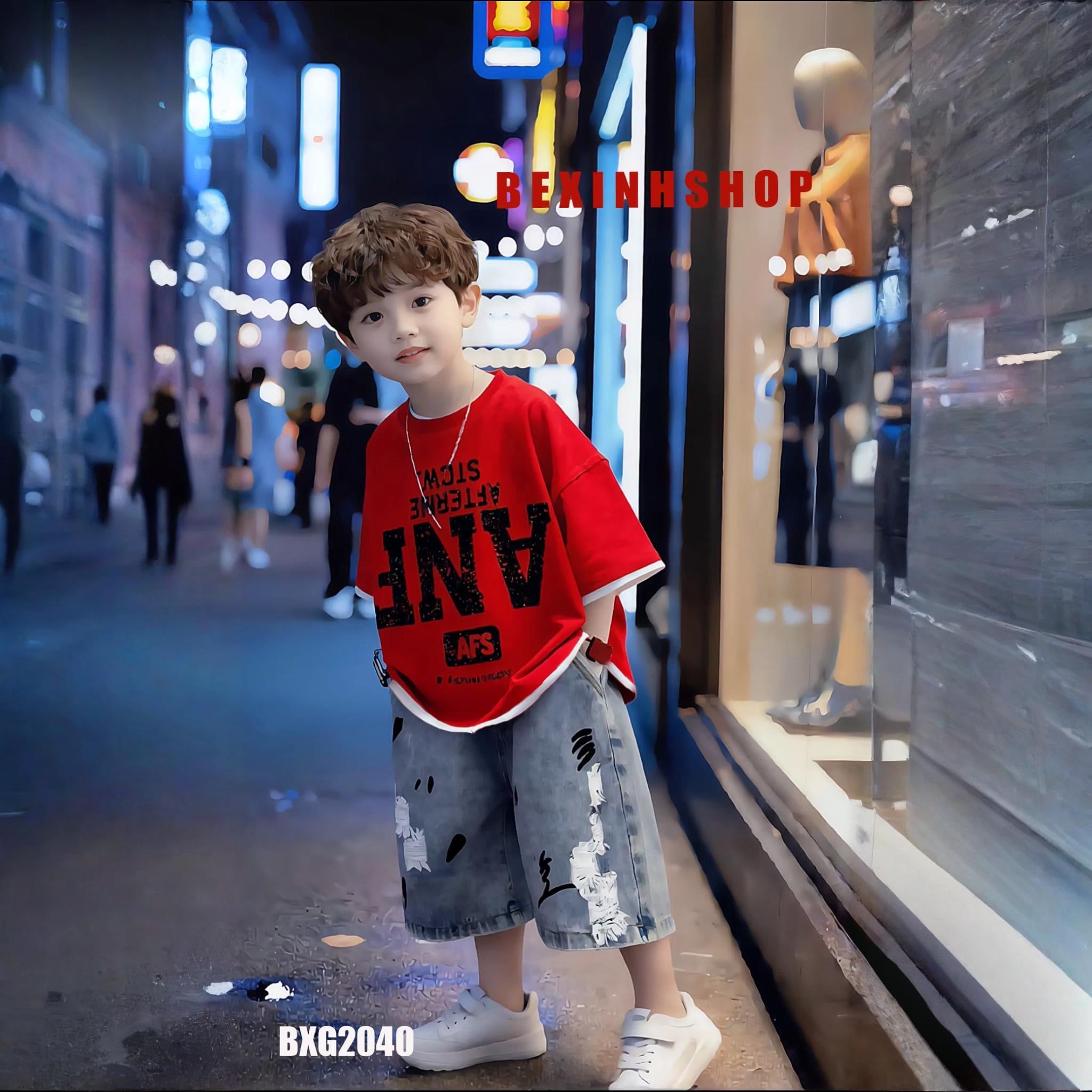 Set đồ bé trai áo in chữ loang ANF quần jeans phom rộng BXG2039