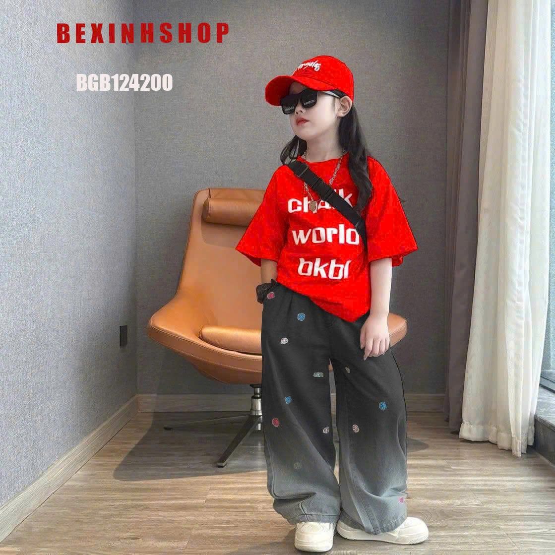 💗 BÉ XINH CHÀO SET JEAN IN CHỮ PHỐI QUẦN WASH CỰC NGẦU CHO BÉ GÁI – BGB124200💗