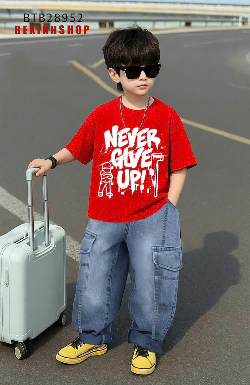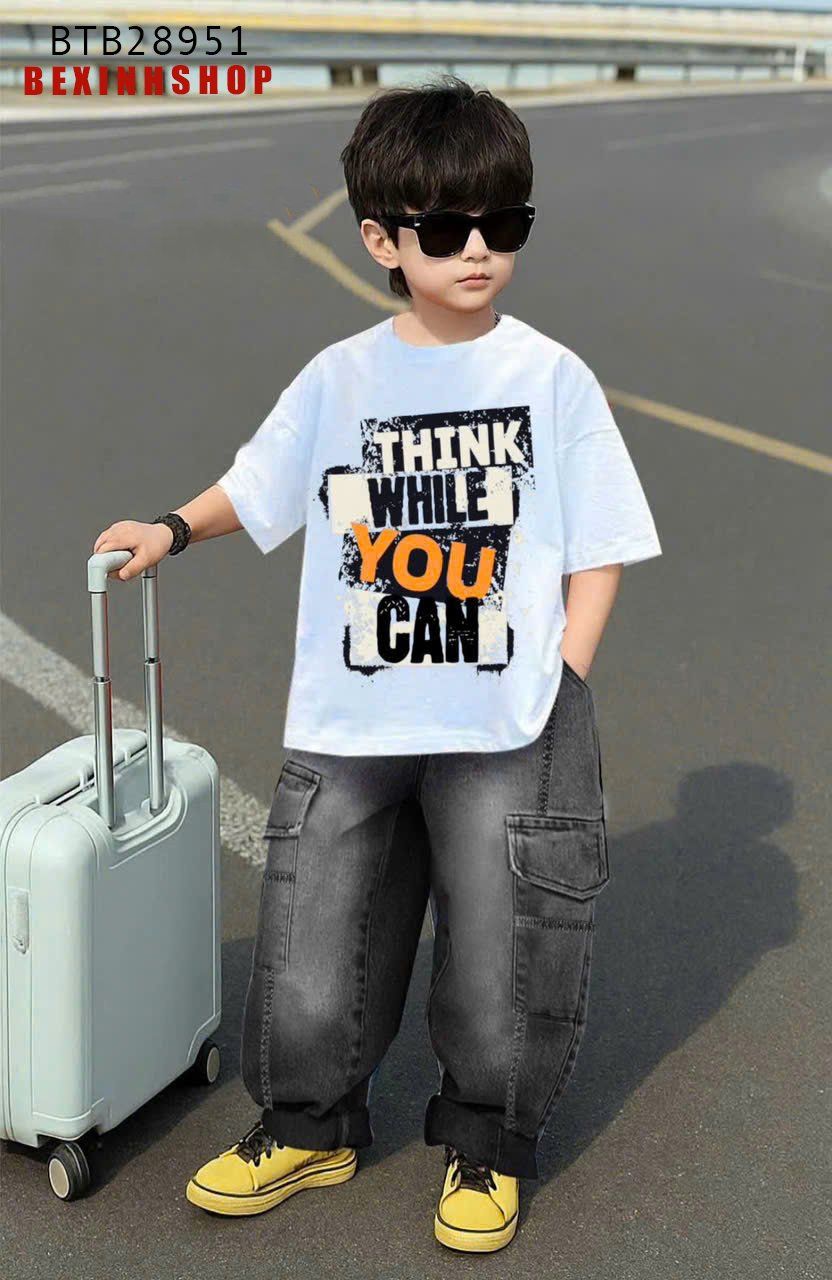Set Jean quần dài đắp túi áo in chữ cực ngầu cho bé trai BTB28951