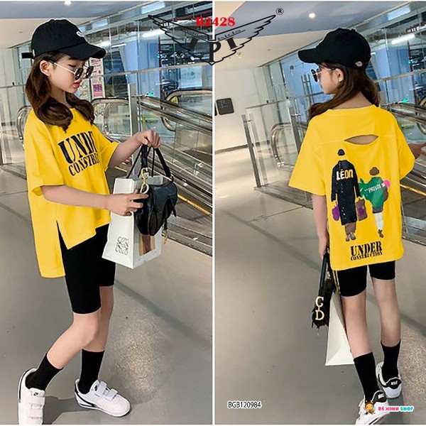 | Thiết kế | Set lệch tà in chữ dễ thương cho bé gái đi chơi, đi học. Chất liệu: nguyên bộ thun cotton chính phẩm co giãn 4c, thấm hút mồ hôi tốt. Kiểu dáng: Áo form rộng vạt ngắn vạt dài mix quần đùi ôm chạy sọc cá tính 1 bên sườn quần. Hình in cao cấp, mềm mại, không dính tróc. Nhí Sz 2-9. Đại Sz 10-16. |