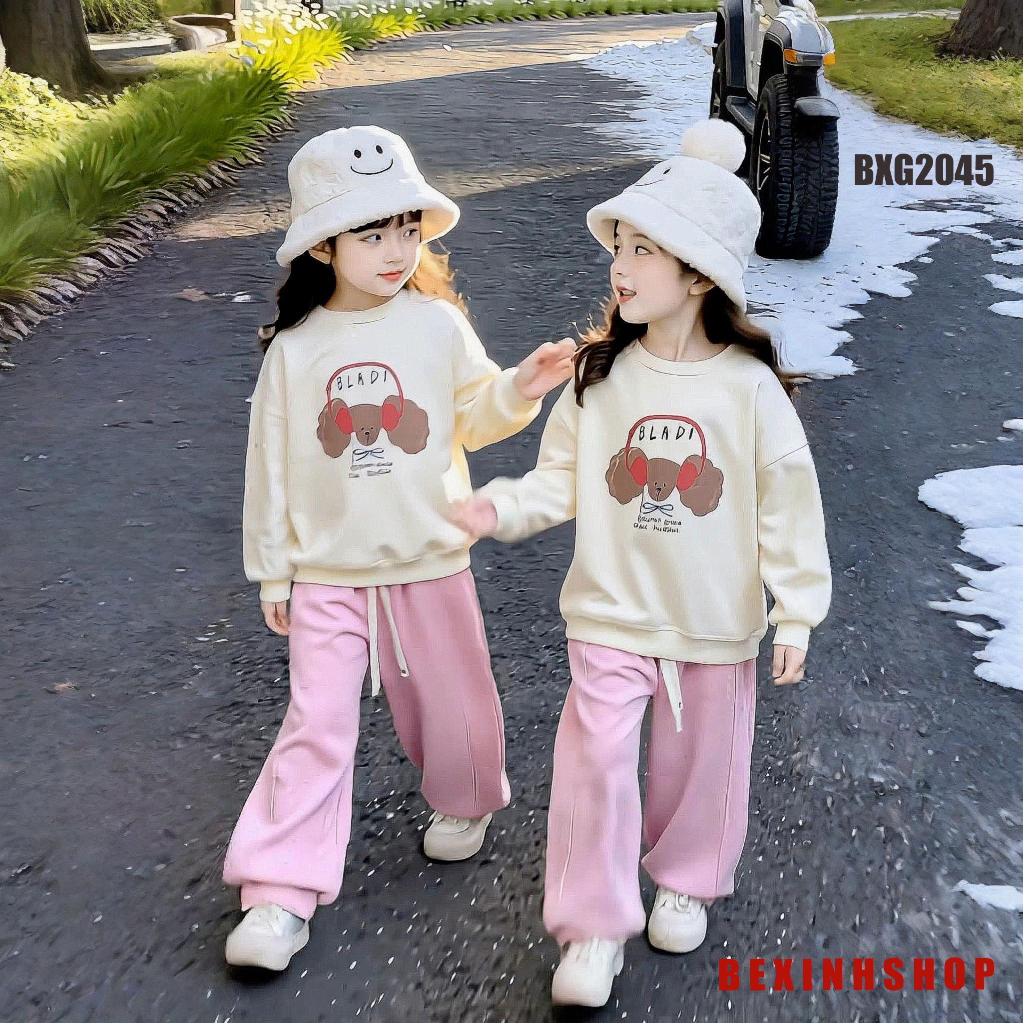 Set nỉ thu đông bé gái quần suông áo dài tay BXG2045