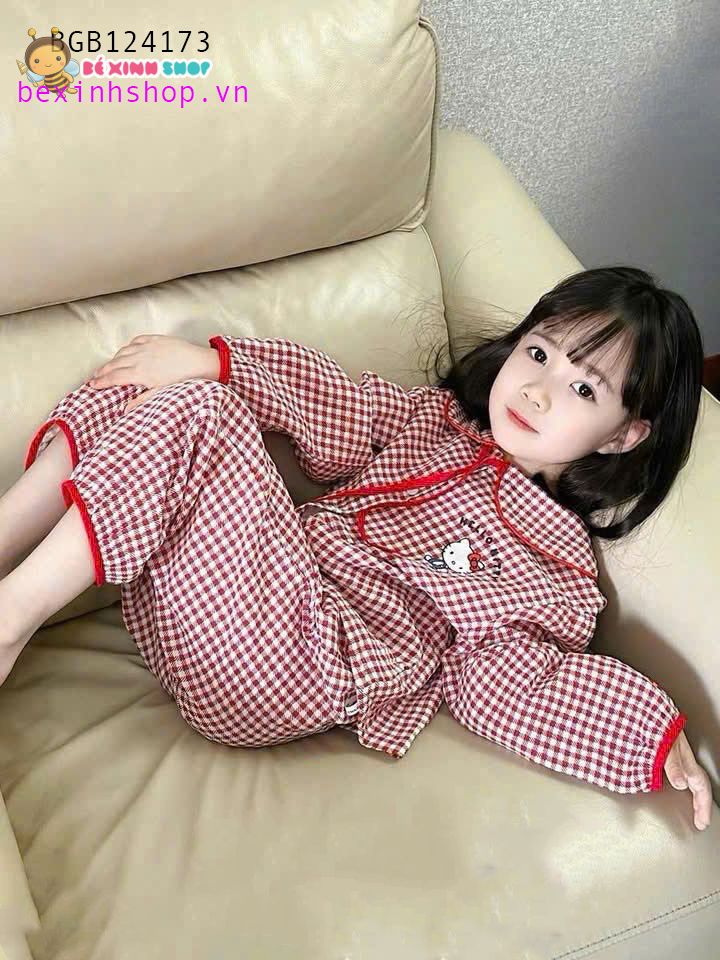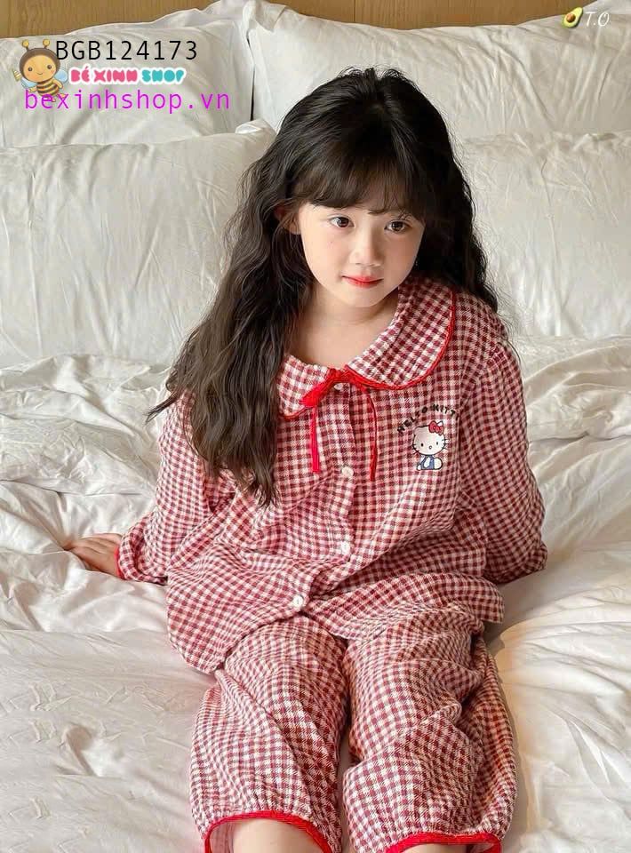 🌼 Bộ Pijama Kitty siêu xinh cho bé gái, cổ bèo thắt nơ trendy, họa tiết caro ngộ nghĩnh 💕